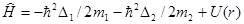 Задача о движении двух взаимодействующих друг с другом частиц в квантовой механике может быть сведена к задаче об одной частице, - аналогично тому, как это может быть сделано в классической механике. Гамильтониан двух частиц ( с массами
