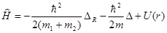 - приведенная масса). Таким образом, гамильтониан распадается на сумму двух независимых частей. Соответственно этому, можно искать