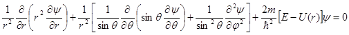 Уравнение Шредингера для движения частицы в центрально-симметричном поле имеет вид