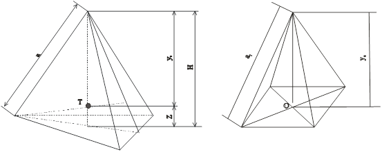 | 6. Відстань центра тетраедра від вершини | yt | yt =h-z = (3/Ö6)R = 0,433 a |