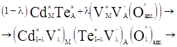В роботі на основі кристалоквазіхімічних підходів [18] запропоновані кристалоквазіхімічні моделі процесів нестехіометрії та легування телуриду кадмію киснем, хлором, індієм; утворення твердих розчинів з ізовалентним і гетеровалентним заміщенням.