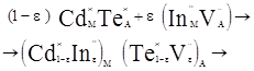 Механізм вкорінення індію (4.15) як і заміщення (4.13) підтверджує його донорну дію. При цьому припускається, що вкорінений індій може знаходитися в зарядовому стані (In+3 ), займаючи ТП чи ОП основної матриці.