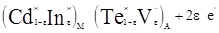 в) легування індієм. З врахуванням донорної дії In в CdTe [23], кристалоквазіхімічний аналіз досліджували за механізмом заміщення атомів індію вакансій кадмію в основній матриці (механізм заміщення) та вкорінення індію у міжвузля, тобто в ТП або ОП порожнини (механізм вкорінення).