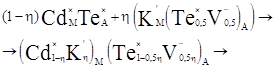 4. При утворені твердих розчинів CdTe-ZnTe, CdTe-K2 Te одержують матеріал р-типу з ізовалентним заміщенням і n-типу з гетеровалентним заміщенням.