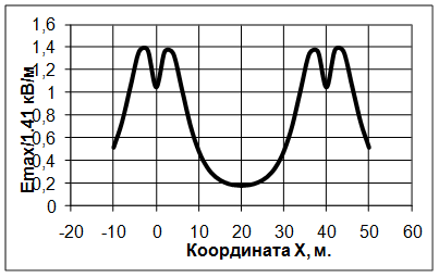 3.4 Исследование электрического поля, создаваемого коридором ВЛ 10/35