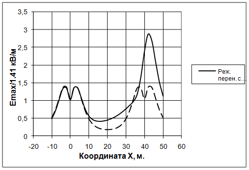 3.14 Исследование электрического поля, создаваемого коридором ВЛ 220/35