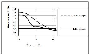- на участках пересечения воздушных линий электропередачи с автомобильными дорогами I - IV категории – 10 кВ/м