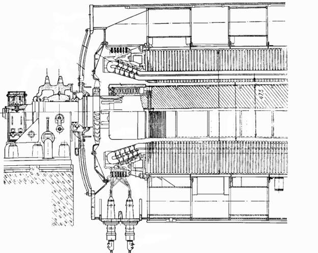 охлаждении тепловая энергия проходит через изоляцию обмотки, а затем отдается стальным частям машины и водороду, заполняющему внутренний объем турбогенератора.