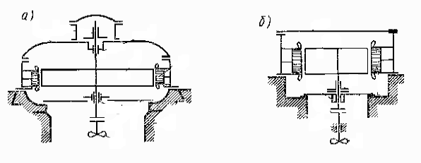 зонтичного типа (рисунок 8б) и горизонтальные гидрогенераторы капсульного типа .