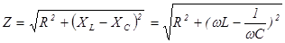 Реактивное сопротивление контура: X = êXL - XC ê.
