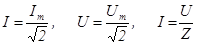 Очевидно, что вид закона Ома для цепи переменного тока не меняется, если вместо амплитудных использовать эффективные значения силы тока и напряжения.