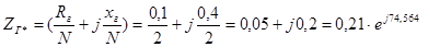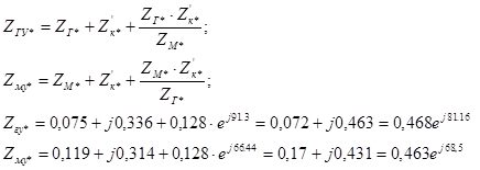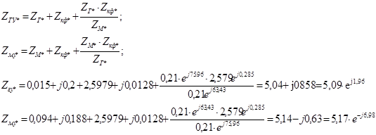 Определяем результирующие сопротивление и проводимость цепи в о. е.:
