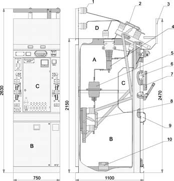 Распределительное устройство выполнено на базе сборных камер одностороннего обслуживания КСО-298. В силовой цепи установлены вакуумные выключатели ВВ/TEL, шинные и линейные разъединители, заземляющие ножи. На каждой секции установлен измерительный трансформатор напряжения НТМИ-6 и трансформатор собственных нужд ТМ-25.