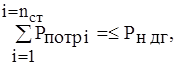 де nст – число щаблів пуску; Рн дг – номінальне навантаження дизель-генератора.