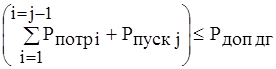 Потужність дизель-генератора при східчастому пуску асинхронного навантаження вибирають по потужності, споживаної (Рпотр i ) електродвигунами, підключеними до секції надійного живлення, і зростаючої з пуском чергового щабля. Повинне виконуватися умова