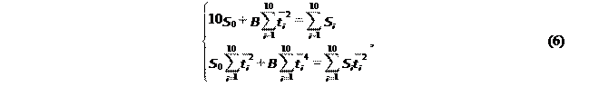 Решить систему уравнений (6) относительно параметров S 0 и B :