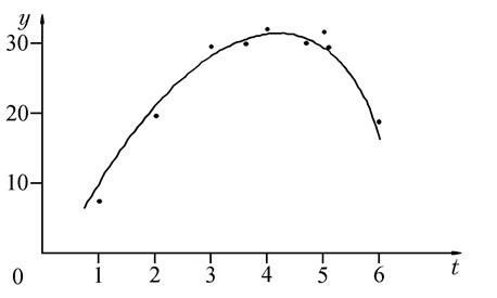 y 1 , y 2 , ..., y n , соответствующих значениям аргумента t 1 , t 2 , …, t n , которые могут быть представлены на графике в виде точек (рис. 2). Нам необходимо установить эмпирическую зависимость между y и t .