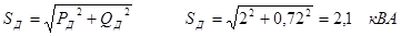 Дневной максимум: РД = РМД = 2 кВт QД = QМД = 0,72 квар