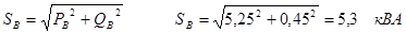 РВ = РМВ + РОсв = 5 + 0,25 = 5,25 кВт QВ = QМВ = 0,45 квар