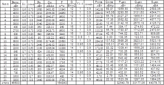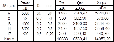 4.1 Определение расчётных нагрузок цехов и предприятия