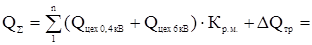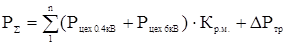 Нагрузка 6 кВ рассчитывается отдельно, так как для неё не определяется мощность освещения и потери в цеховых трансформаторах.