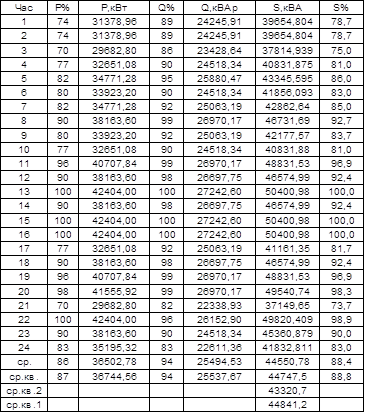 Расчетный максимум активной, реактивной и полной нагрузки: