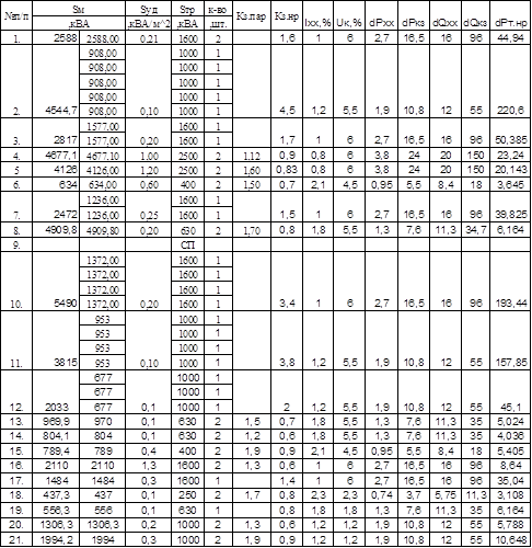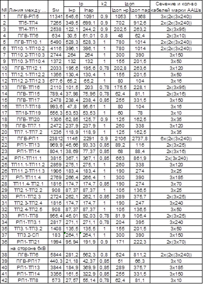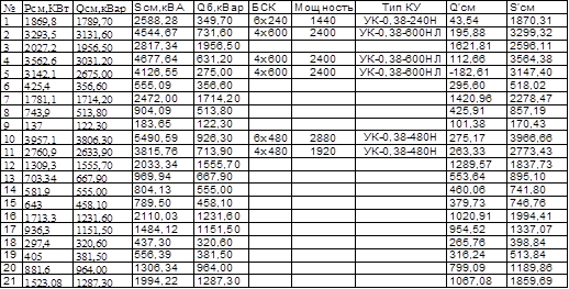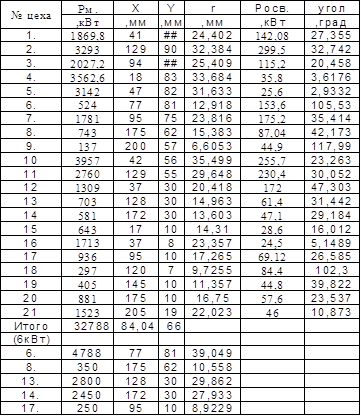 Результаты расчета нагрузки для остальных цехов сведены в таблицу 2 и таблицу 3 (для потребителя 6кВ).