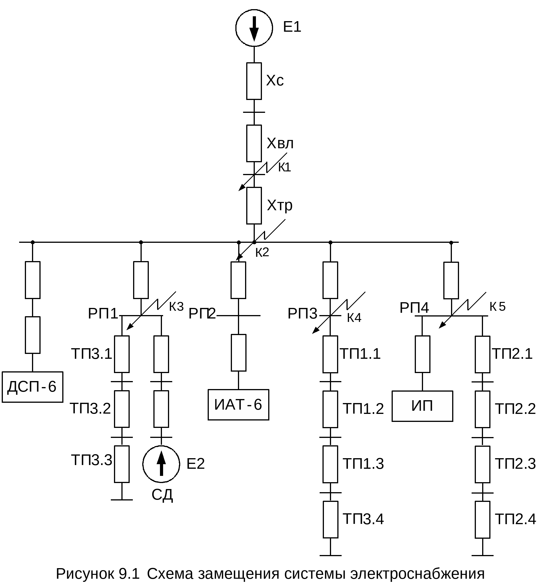 и внешнего электроснабжения, рассчитываются токи короткого замыкания.