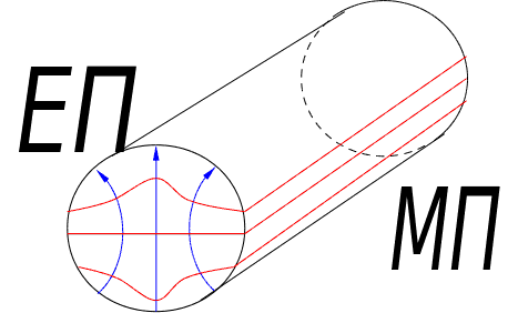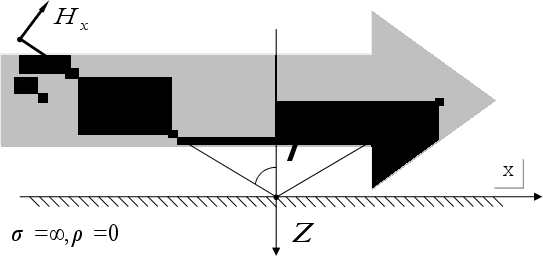 Наближення: Існує Т – хвиля (нехтуємо випромінюванням). Використаємо симетрію задачі. Цікавимося випромінюванням на краю.