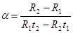 Значения t1 и t2 и соответствующие им значения сопротивлений R1 и R2 выбираются по графику произвольно.