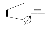 Более распространены яркостные пирометры, в которых яркость[1] свечения исследуемого тела сравнивается с яркостью тела, температура которого известна. Схематически устройство яркостного пирометра показывает рис.8. Обычно в качестве тела сравнения берут вольфрамовую нить Н специальной электролампы, питаемой от стабильного источника тока E. Меняя ток этой лампы при помощи реостата R можно выровнять её яркость с яркостью исследуемого тела, в этом состоянии температуры тел одинаковы. Температуру нити лампы сравнения определяют по току миллиамперметра А, при этом шкалу миллиамперметра заранее градуируют непосредственно в градусах.