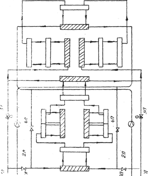 Открыты следующие задвижки ПС-1Л и ПС-Ш, ПС-5Л и ПС-5П, 2Л, 2П, а задвижки ЗП, ЗЛ, 4П, 4Л закрыты.