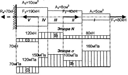 В тех случаях, когда нормальные напряжения в различных поперечных сечениях бруса неодинаковы, целесообразно показывать закон их изменения по длине бруса в виде графика — эпюры нормальных напряжений