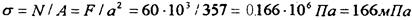 Нормальные напряжения вычисляем по формуле: σ = N/А