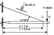 Проверить прочность стержней, если они нагружены силой F=40kH. Стержни изготовлены из дюраля одинакового сечения D=25мм. Допускаемое напряжение [σ]=75МПа. Условия соответствуют рисункам задачи №1.