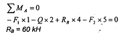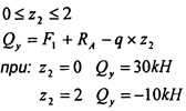 действующие силы: q = 20 кН; F= 30 кН; F=10кН.