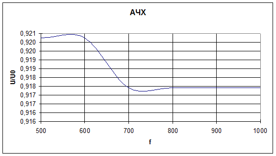2. Определить амплитудно-частотную характеристику (АХЧ) вольтметра как отношение показания испытуемого вольтметра к показаниям образцового вольтметра для точки шкалы 0,8 от верхнего предела измерений. Построить график зависимости указанного отношения от частоты.
