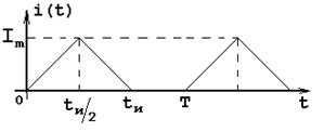 При исследовании линейной цепи, можно сделать заключение, что при прохождении треугольного импульса через цепь он искажается: растягивается во времени, изменяется его амплитуда. На выходе при периодическом воздействии импульса получены слабовыраженные колебания тока.