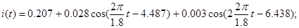 Построение амплитудного и фазового спектров выходного периодического сигнала, используя рассчитанные в п.3.1 АЧХ и ФЧХ функции передачи цепи. Запись тока