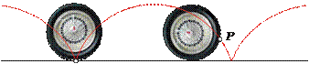 на ободі колеса автомобіля під час руху: відносно автомобіля це коло (червона лінія),