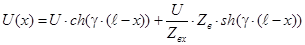 2.2 Рассчитать и построить распределение напряжения вдоль линии при ее нагрузке на четырехполюсник.