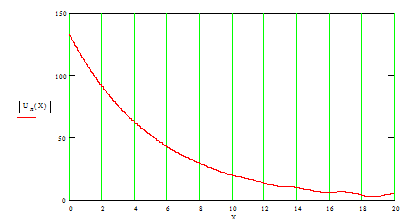 График изменения амплитуды напряжения вдоль линии: