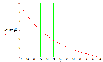 График изменения фазы напряжения вдоль линии: