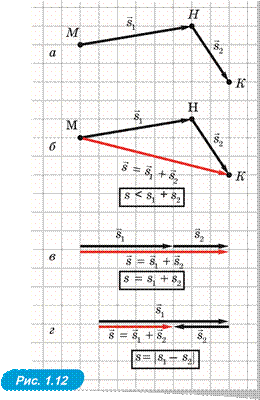 Напрям швидкості v збігається з напрямом переміщення s , а модуль швидкості