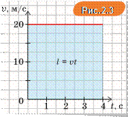 Ця фігура — прямокутник. Його площа дорівнює добутку висоти v на основу t , тобто vt . А це саме і є виразом для шляху, пройденого тілом за умови прямолінійного рівномірного руху, адже l vt .