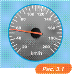 (рис. 3.1). Спостерігаючи за спідометром під час їзди, можна помітити, що швидкість автомобіля змінюється з часом