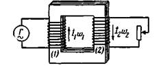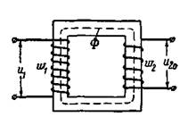 Обратимся к рис. 2-11, где схематически изображен однофазный трансформатор. Здесь первичная обмотка с числом витков w 1 и вторичная обмотка с числом витков w 2 расположены для наглядности на разных стержнях.