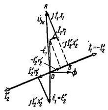 Реактивная составляющая I 0 р , которую называют также намагничивающим током, идет на создание магнитного поля в сердечнике трансформатора. Ее значение определяется из расчета магнитной цепи трансформатора (§2-14).