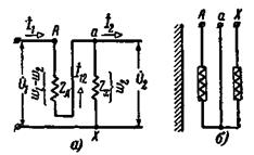 Надежность работы трансформатора в большой степени зависит от выполнения его. изоляции. Трансформаторы на напряжение 115000 В и выше должны иметь особенно прочную изоляцию. Теоретические и экспериментальные исследования советских ученых и инженеров Московского трансформаторного завода (МТЗ) имени В. В. Куйбышева позволили разработать оригинальные конструкции изоляции трансформаторов с экранирующими емкостями (§ 2-20,в ), что значительно повысило надежность их работы. Такие трансформаторы получили название грозоупорных и нерезонирующих, так как при грозовых разрядах на линию передачи, соединенную с трансформаторами, в них почти не возникают опасные перенапряжения резонансного характера.