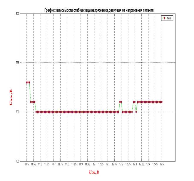 Рис.15. График зависимости стабилизации напряжения делителя от напряжения питания